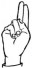 На ћирилици написано КАЋА ЕРШЕВИЋ састоји се из 11 слова [?]. Исписано ћириличном једноручном азбуком за глувонеме: